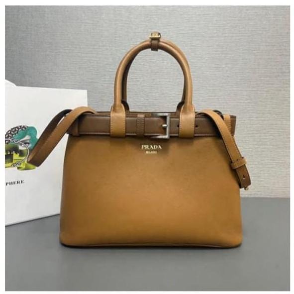 Embody timeless sophistication with the Prada Galleria Saffiano Leather Tote Bag in a rich brown shade. Expertly crafted from Prada’s signature saffiano leather, this structured handbag blends luxury with everyday practicality. Designed with dual top handles, a detachable shoulder strap, and a sleek buckle detail, it offers versatile carrying options and a refined aesthetic. The gold-tone Prada Milano logo adds an iconic touch, making it a must-have accessory for both professional and casual settings.